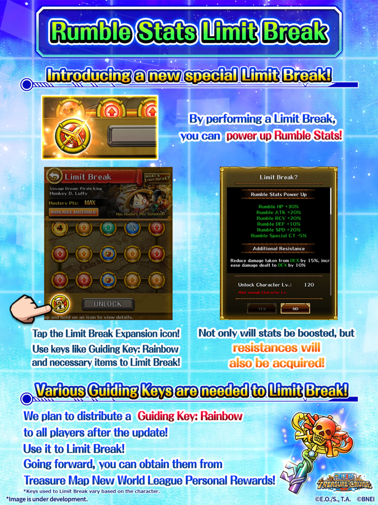 Various Guiding Keys are needed to Limit Break Rumble Stats. A Guiding Key: Rainbow, which can be used to Limit Break, will be distributed to all players after the update!