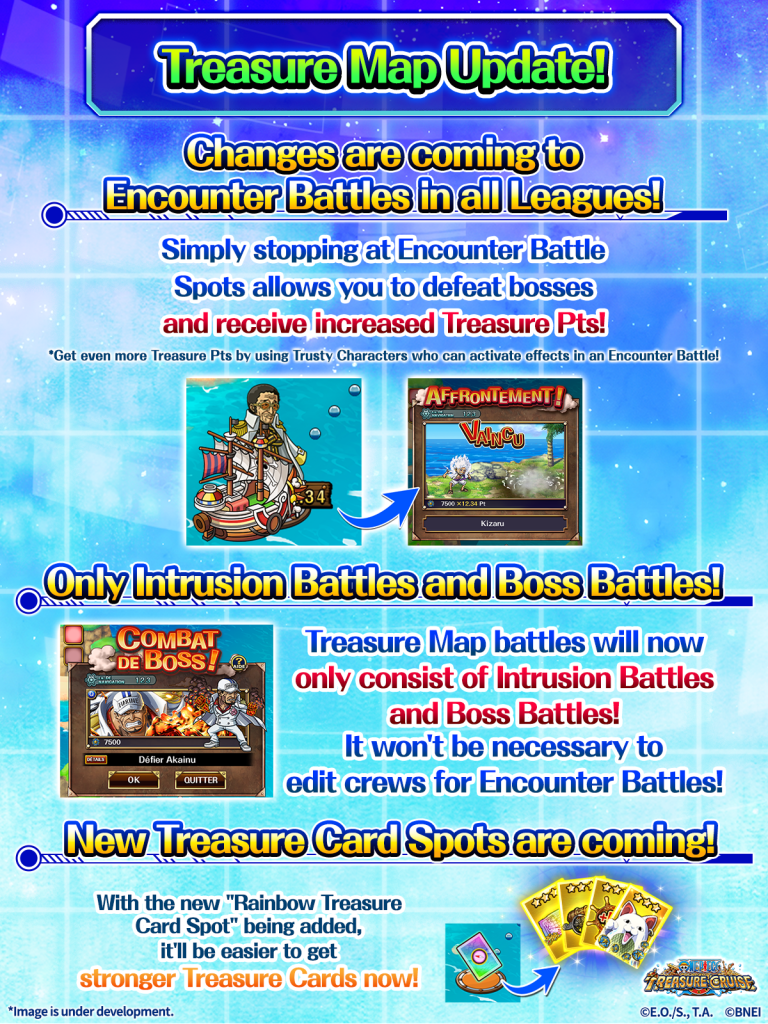 Changes are coming to Encounter Battles in all Leagues, and simply stopping at Encounter Battle Spots allows you to clear Encounter Battles. Treasure Map Battles will now only consist of Intrusion Battles and Boss Battles.