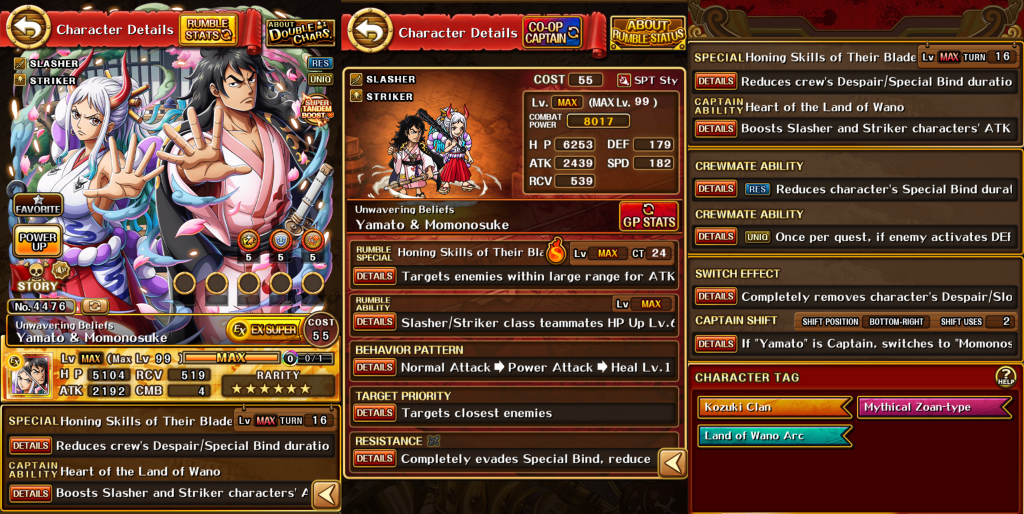 – If “Yamato” is Captain, switches to “Momonosuke” and can choose to swap bottom-right character with the Captain for 6 turns