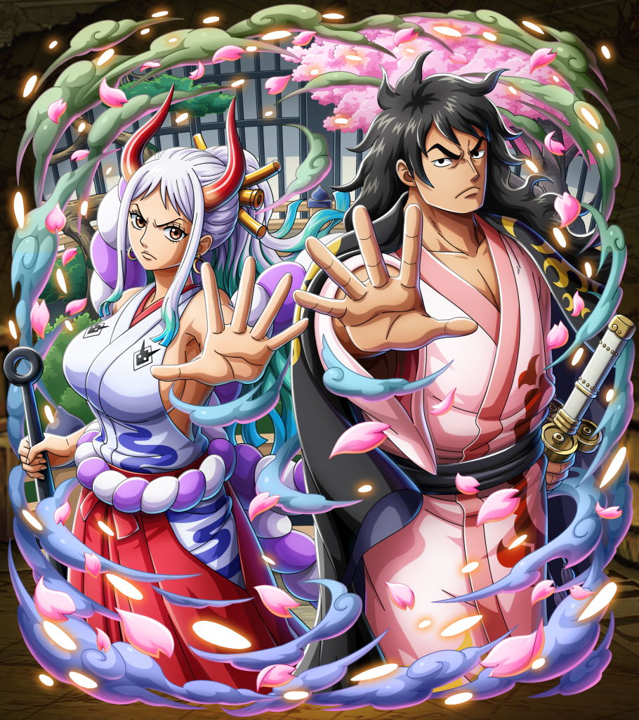 Kozuki Oden, Kozuki Hiyori (Komurasaki), Kozuki Toki, Kozuki Sukiyaki (Tenguyama Hitetsu), Kin’emon, Izo, Raizo, Okiku, Ashura Doji (Shutenmaru), Dogstorm, Cat Viper, Kawamatsu, Denjiro (Kyoshiro), Shinobu, Otama, Monkey D. Luffy, Trafalgar Law, Eustass Kid